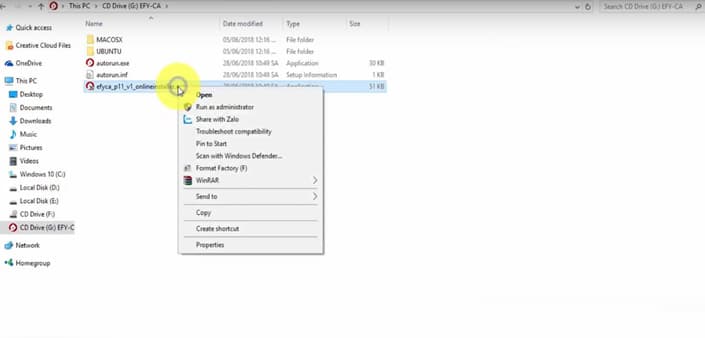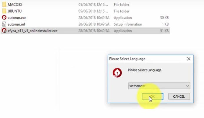 Bước 1: Sau khi anh/chị tải phần mềm driver Efy version 1.0 trên trang chủ Efy về máy. Hoặc chọn cài đặt phần mêm tại file có up dưới bài viết.