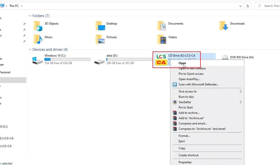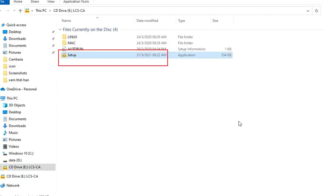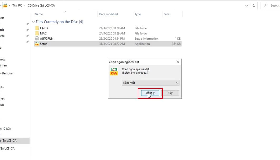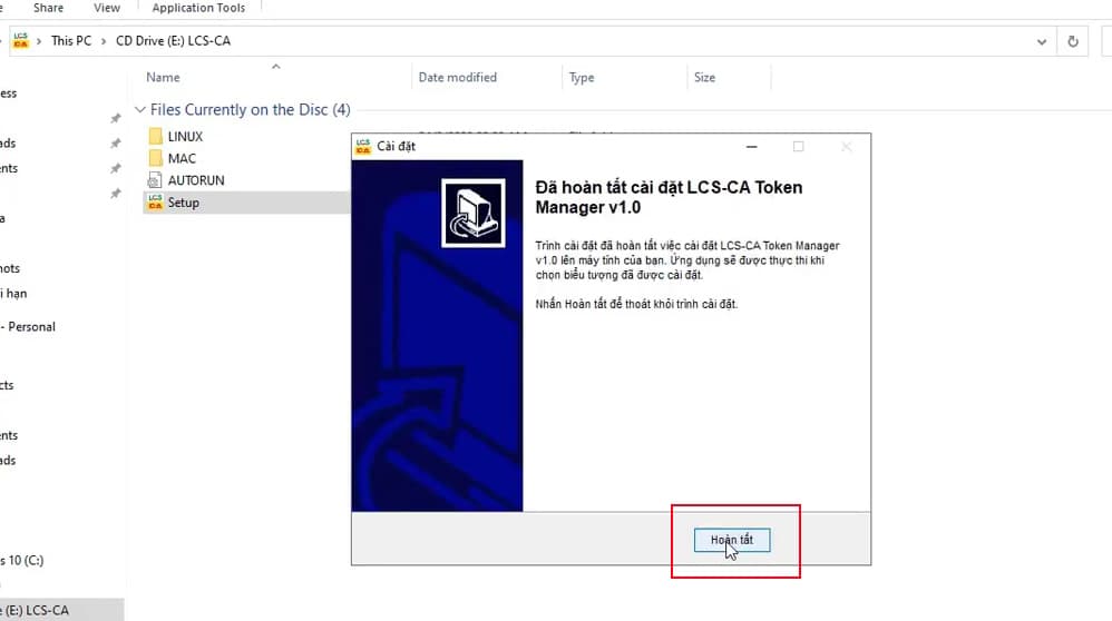 Bước 1: Sau khi cắm Token vào máy tính => vào My Computer/This PC kiểm tra xem đã có thêm ổ đĩa ảo CD Drive (E:) LCS-CA chưa.